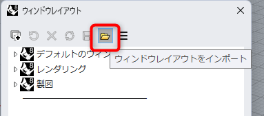 3.ウィンドウレイアウトをインポート ボタンを押し、コピーしたRHWファイルを選択し開く。