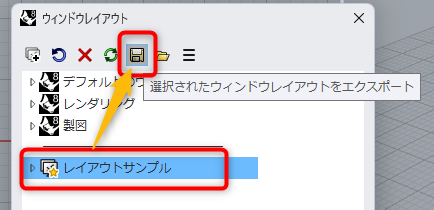 4.エクスポートしたいレイアウトを選択して、エクスポートボタンを実行。ウィンドウレイアウトをRHW形式で保存する。