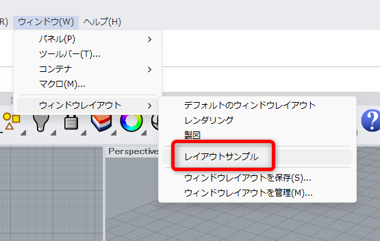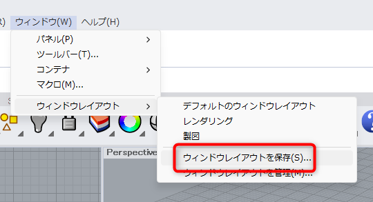Rhino7以前のバージョンでは、RUIファイルを使用してツールバーの移植を行っていましたが、Rhino8からは「ウィンドウレイアウト」からRHWファイルを使用します。