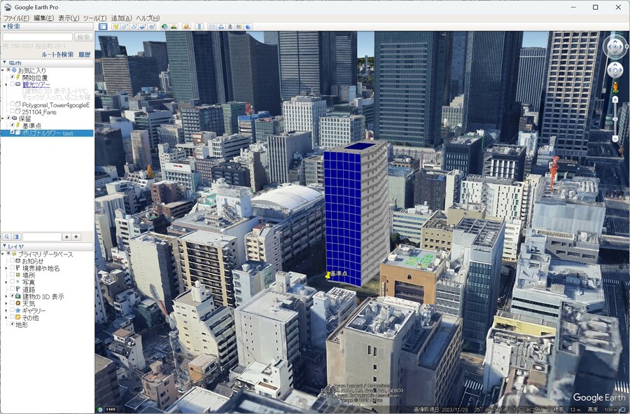 ここからは、Google Earth Pro を使用して、Rhinoで作成したモデルを地理空間情報として扱う方法を紹介します。Google Earth Pro は、高度なGISソフトではありませんが、地理空間情報を表示・確認するためのGISビューアとして利用できます。3Dモデルを地図上で素早く確認したい場合に適したツールです。