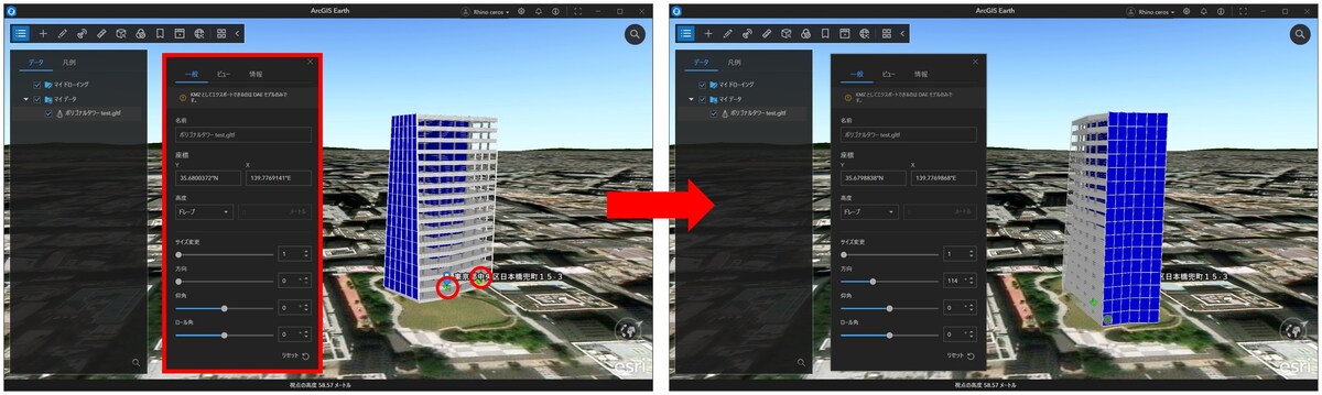 今回は、ArcGIS Earthの基本的な表示機能と、3Dモデルの移動・回転・スケール調整機能を使用します。